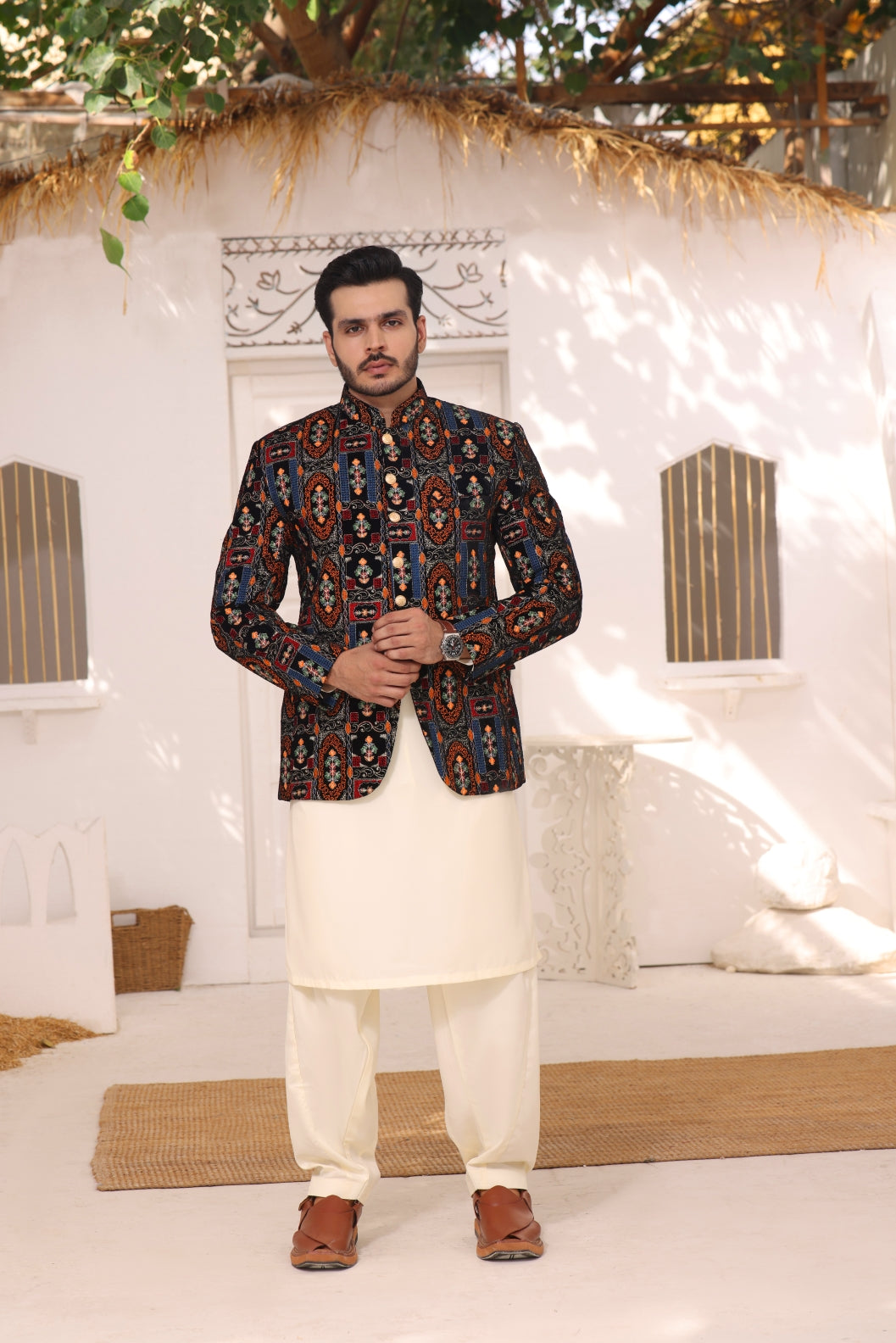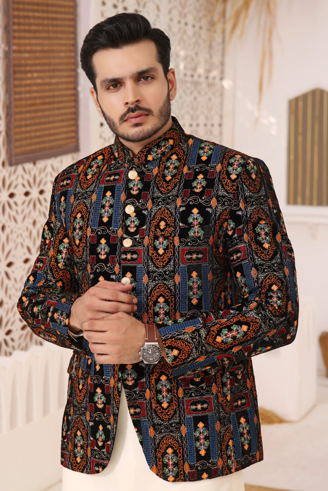 Men’s Prince Coat with Computerized Chikan Embroidery Multi Colors
