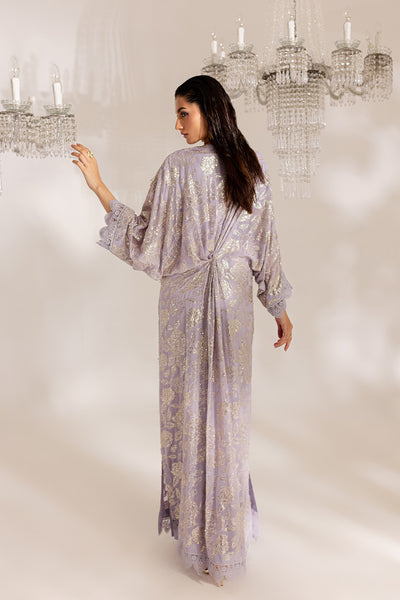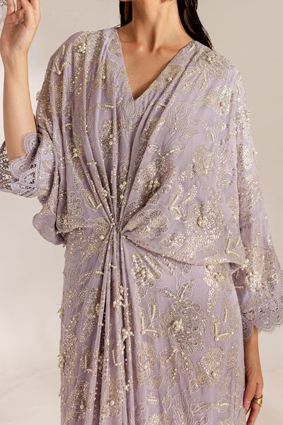 Lavender sequined kaftan with hand embellished details.