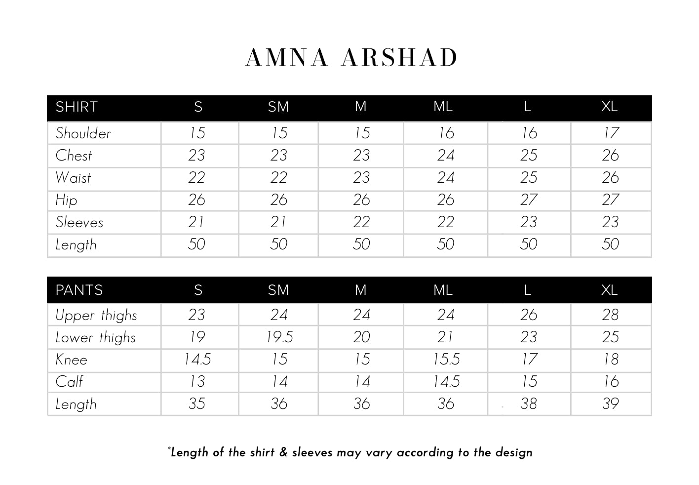 SIZE CHART :