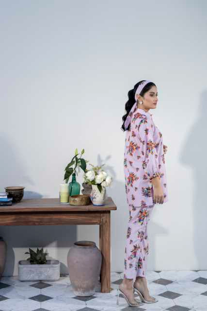Effortlessly chic, our two-piece Viscose Lawn printed ensemble exudes timeless floral elegance. The front-open