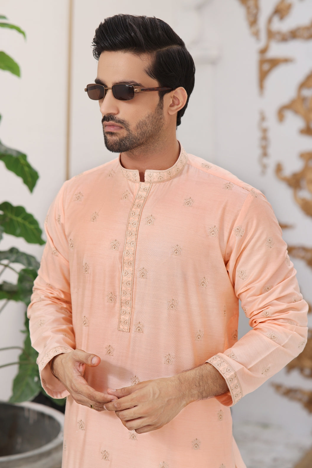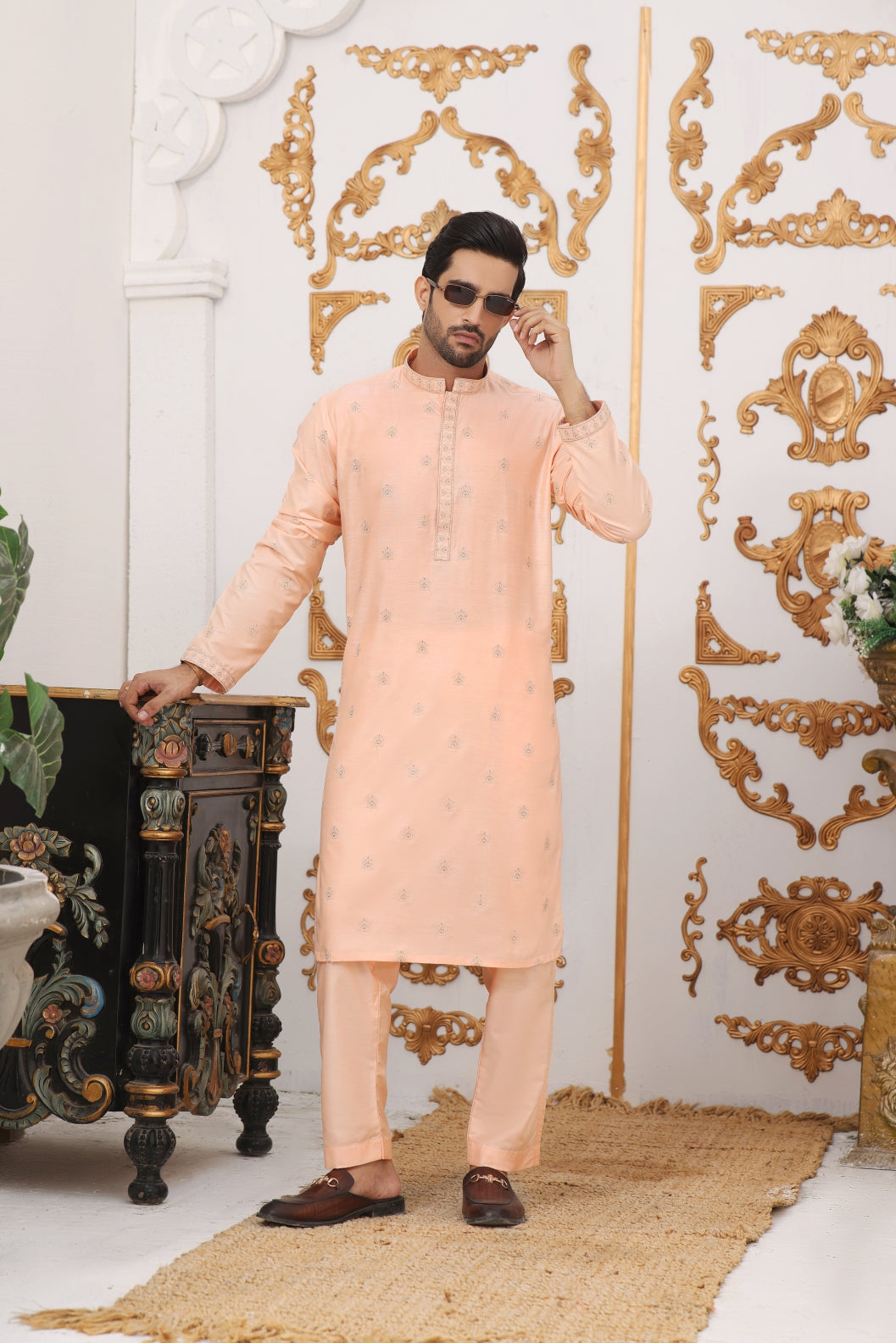 DESCRIPTION: Men’s Formal Kurta Pyjama Crafted from 100% premium Cotton Silk fabric With Computerized Embroidery