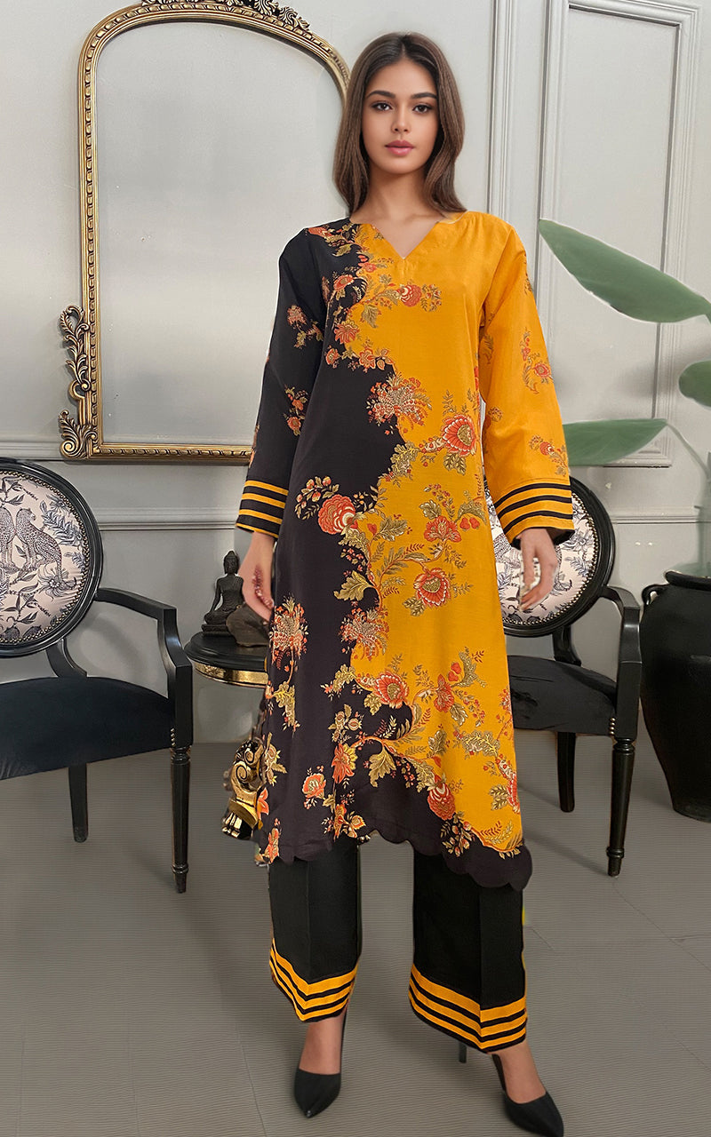 A symphony of sunshine and shadow, this viscose silk tunic whispers romance. Golden hues dance with floral patterns, a captivating blend of beauty.