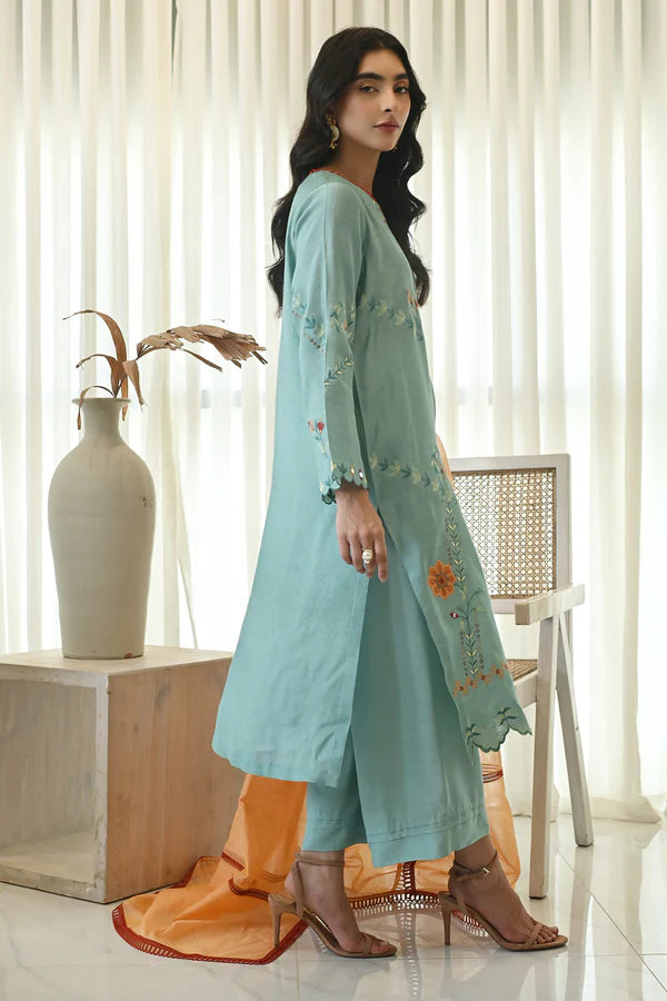 Elevate your style with this elegant sea green kurta, featuring intricate embroidery, delicate mirror work, and