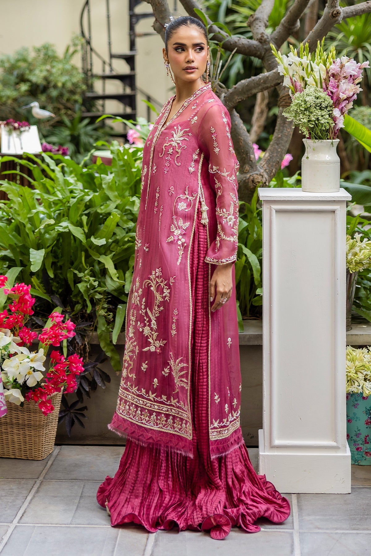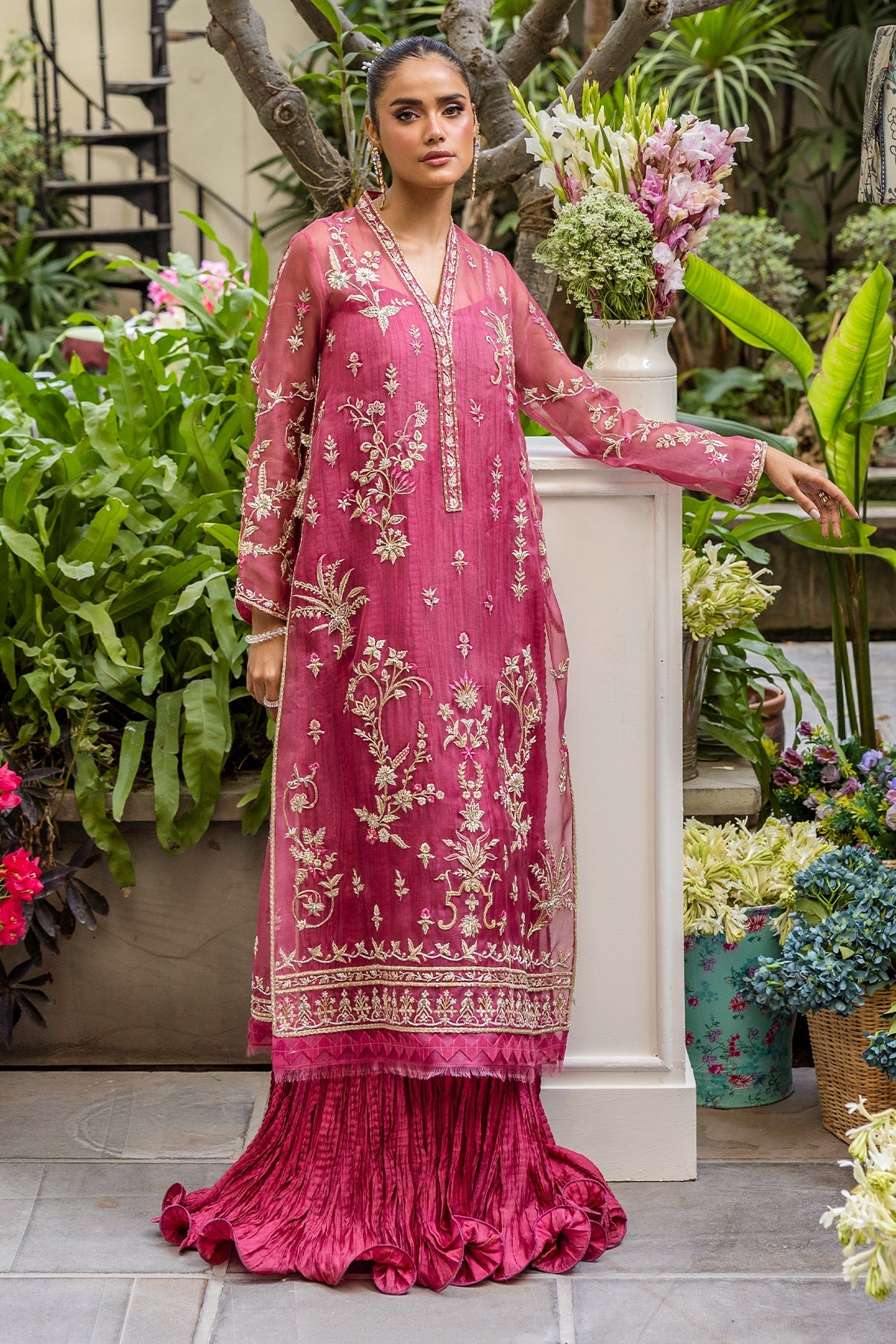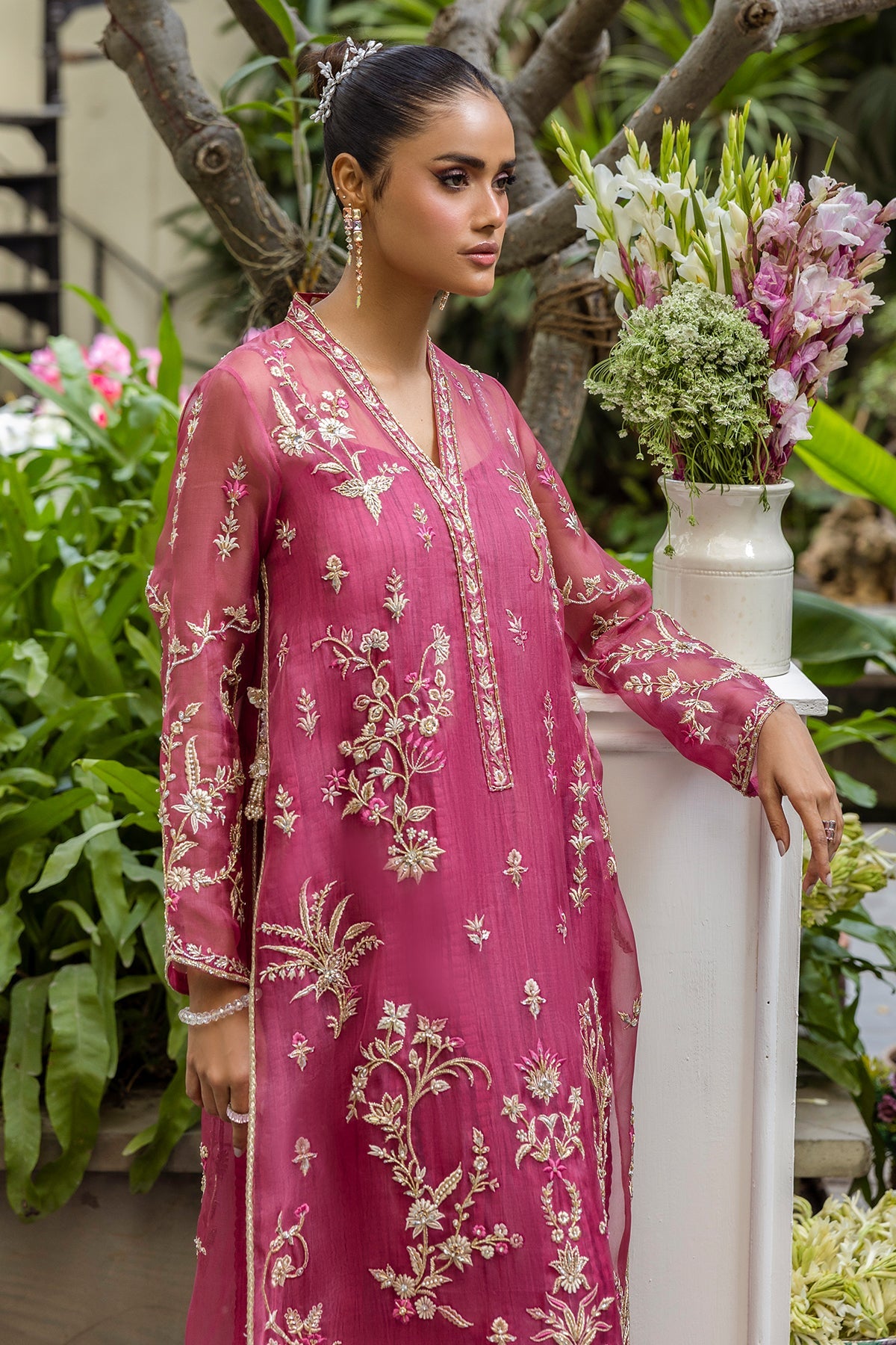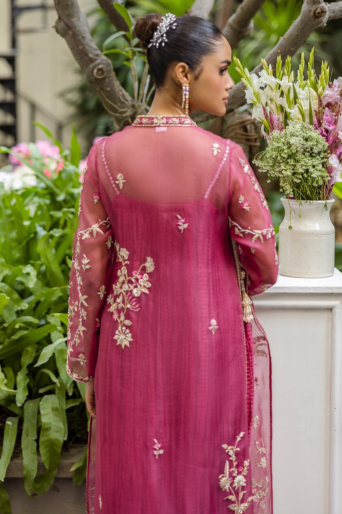 A delicate fusion of elegance and craftsmanship, this embroidered organza shirt is adorned with hand-embellished details for a refined, luxurious look. Paired with a flowy crushed shift dress.