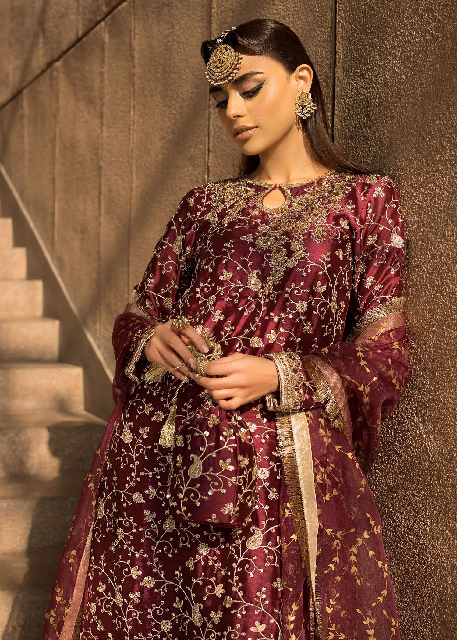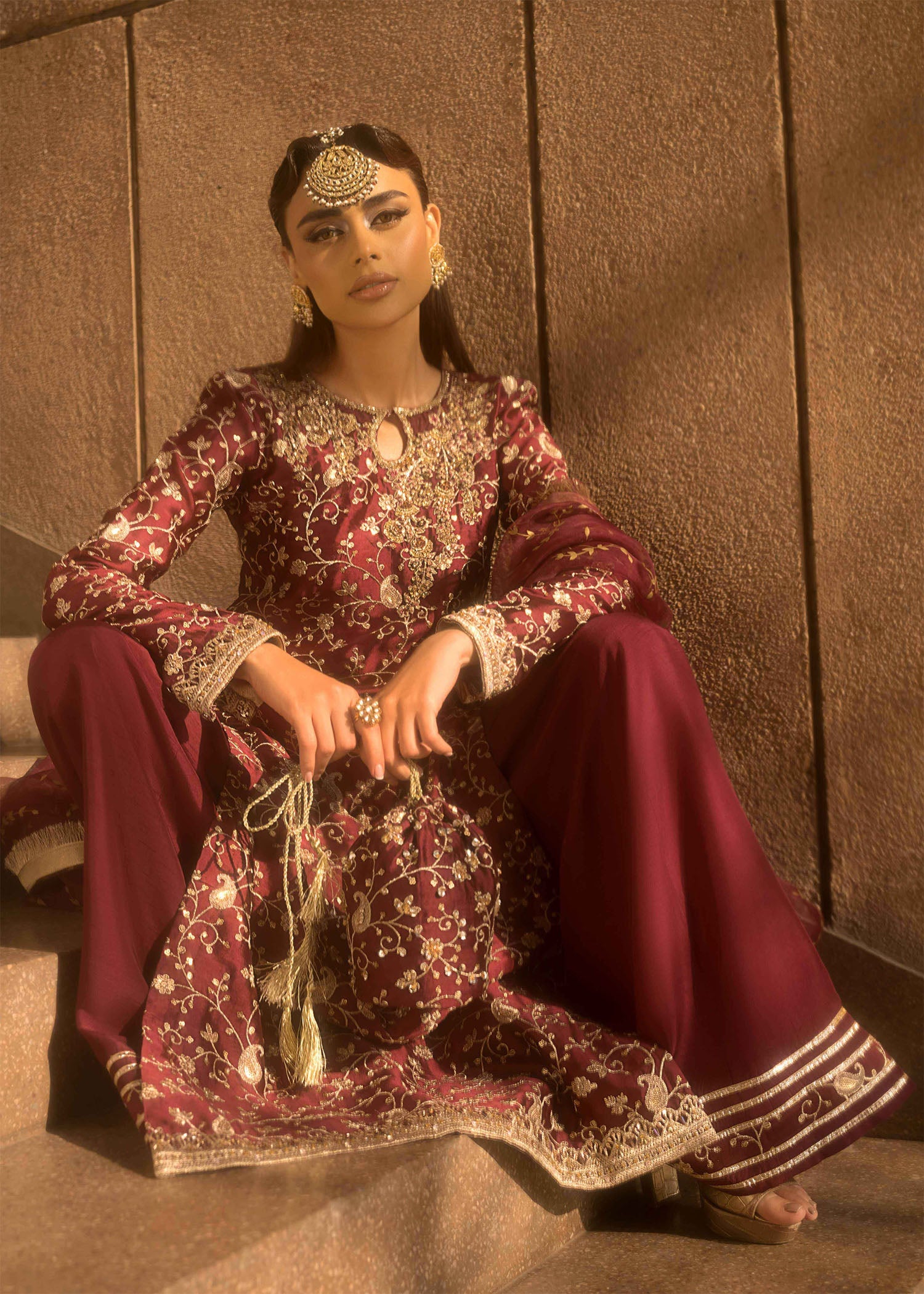 Sassy is the perfect embodiment of modern sophistication blended with intricate artistry. The ensemble features a long, straight-cut silk tissue shirt, meticulously embroidered with traditional techniques like dabka, kora tilla, and delicate crystals. These embellishments create a luxurious texture and a stunning visual effect, while the refined details along the neckline and borders exude an air of elegance and grace.