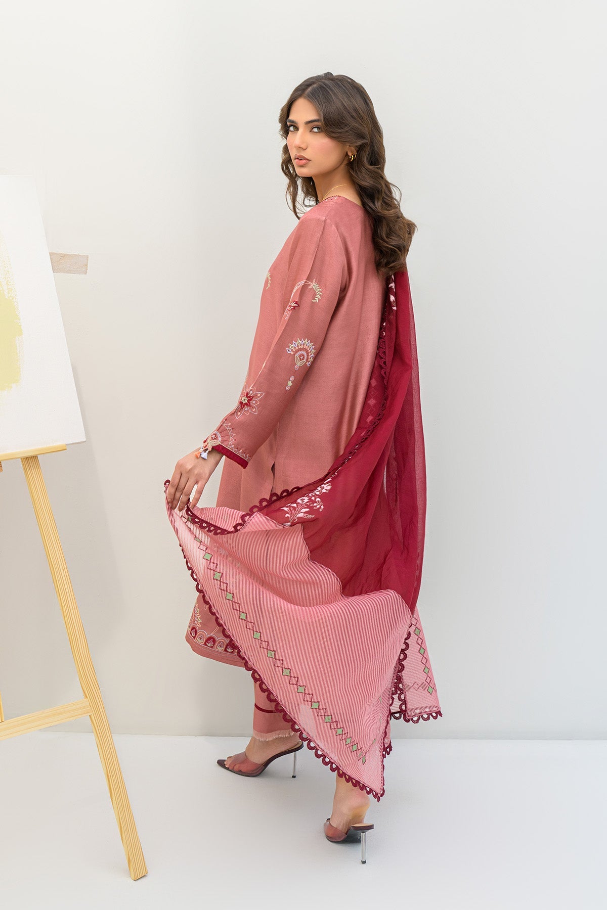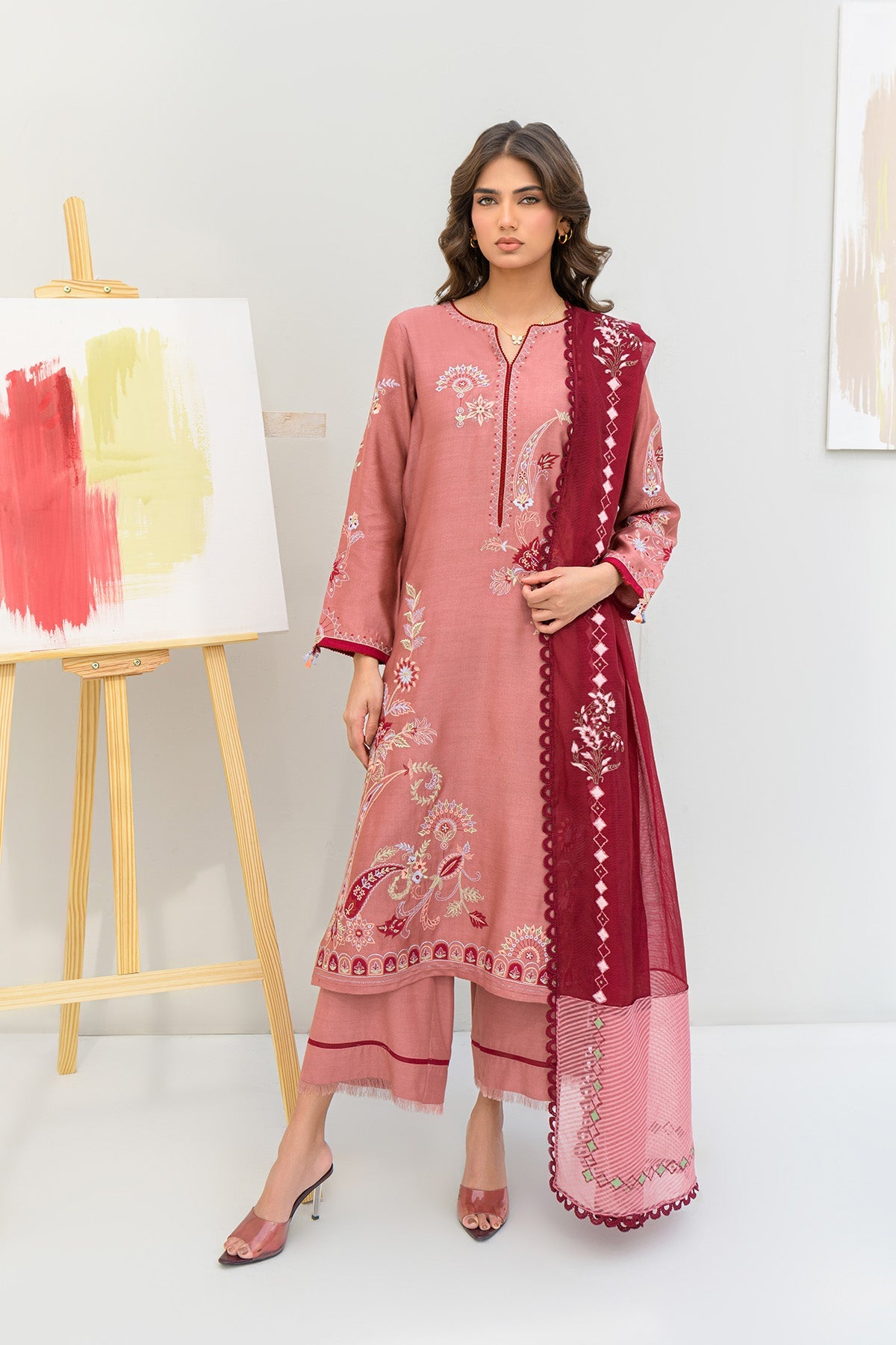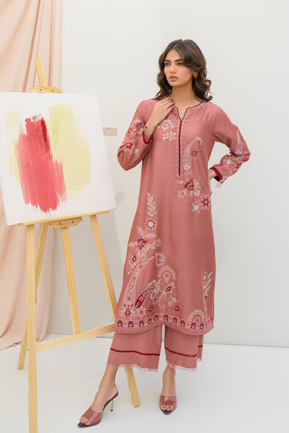Sienna in Tea Pink is a beautifully embroidered Kashmiri design on spun cotton fabric. The standard fit and matching dupatta ensure a chic, comfortable look ideal for any occasion.