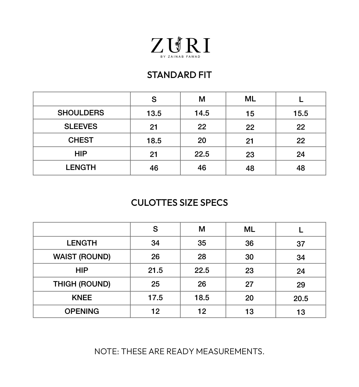 SIZE CHART :
