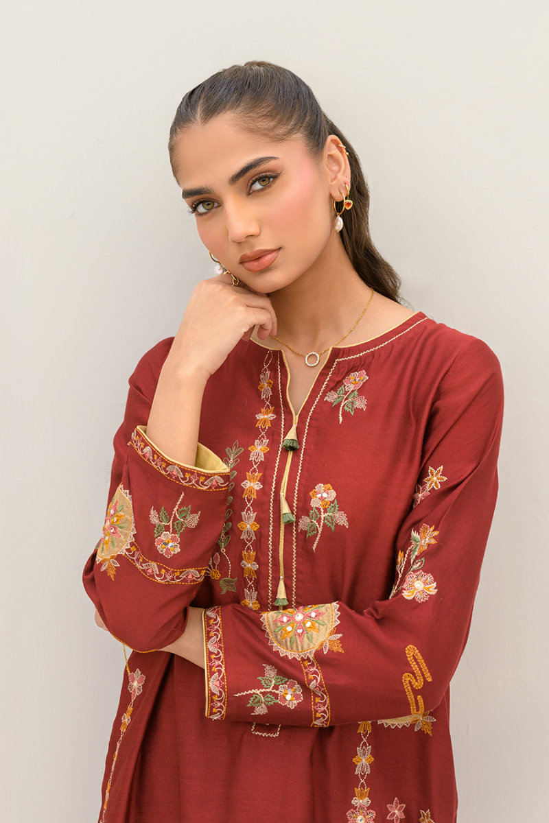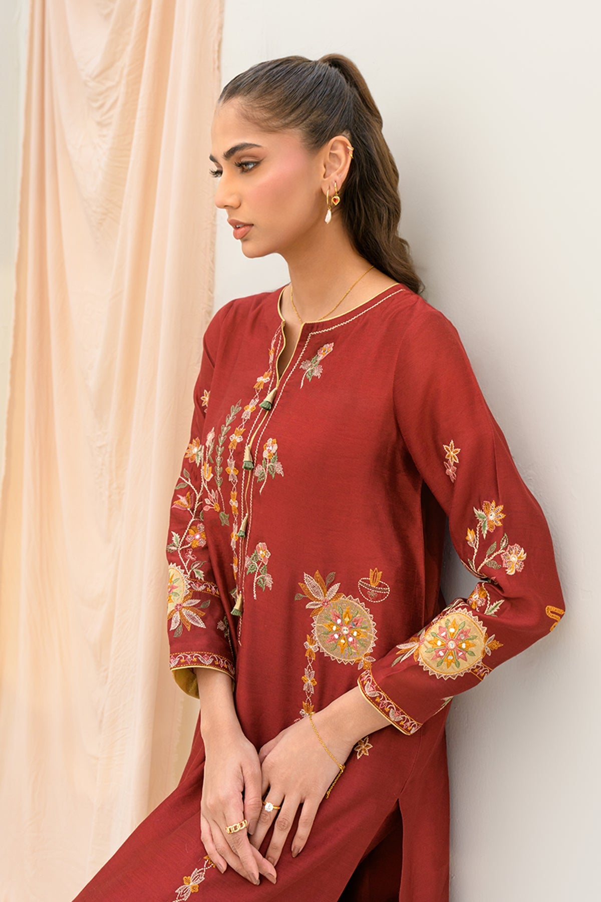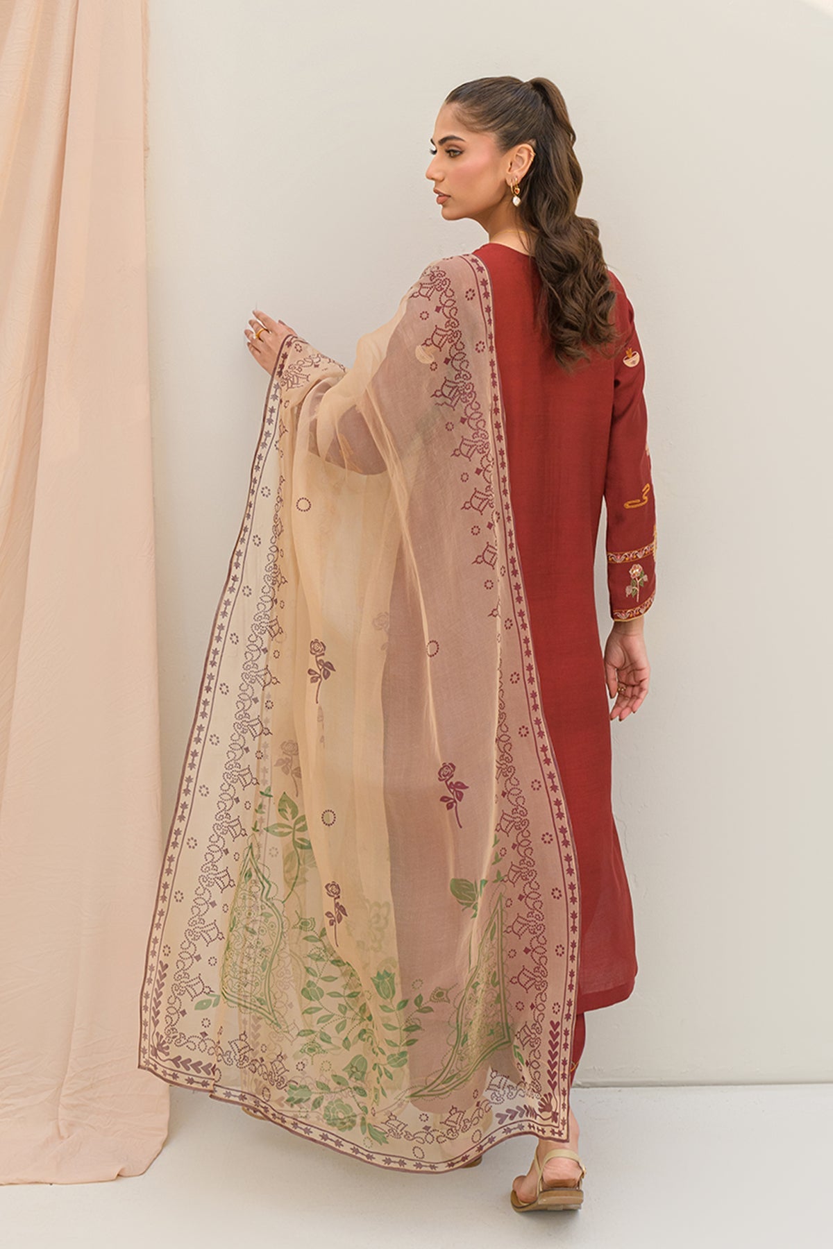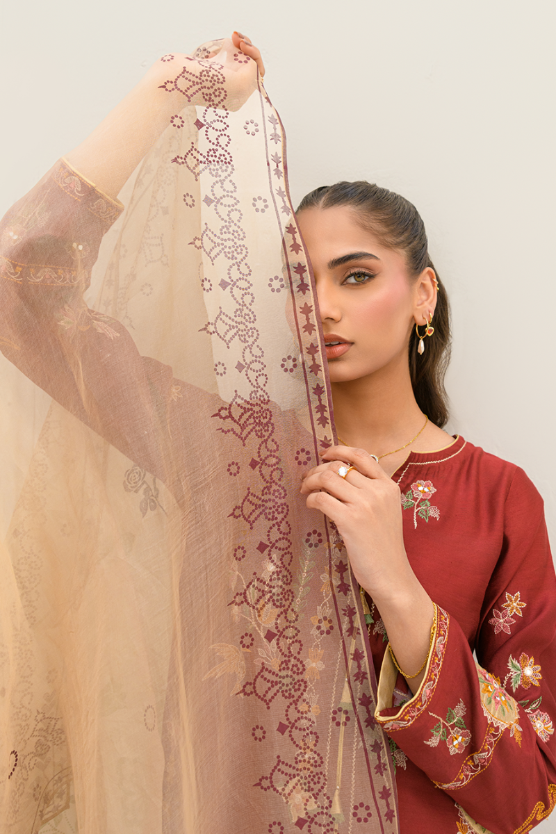 Zenara embodies timeless elegance with intricate tissue appliqué embroidery and floral elements. Crafted with precision, the delicate textures and refined details create a graceful, ethereal look.